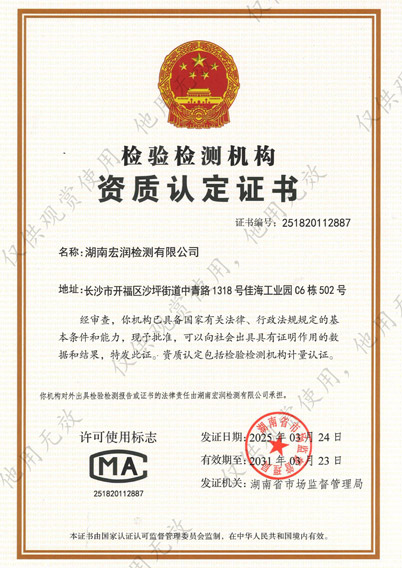 湖南宏潤檢測有限公司檢驗(yàn)檢測機(jī)構(gòu)資質(zhì)認(rèn)定證書